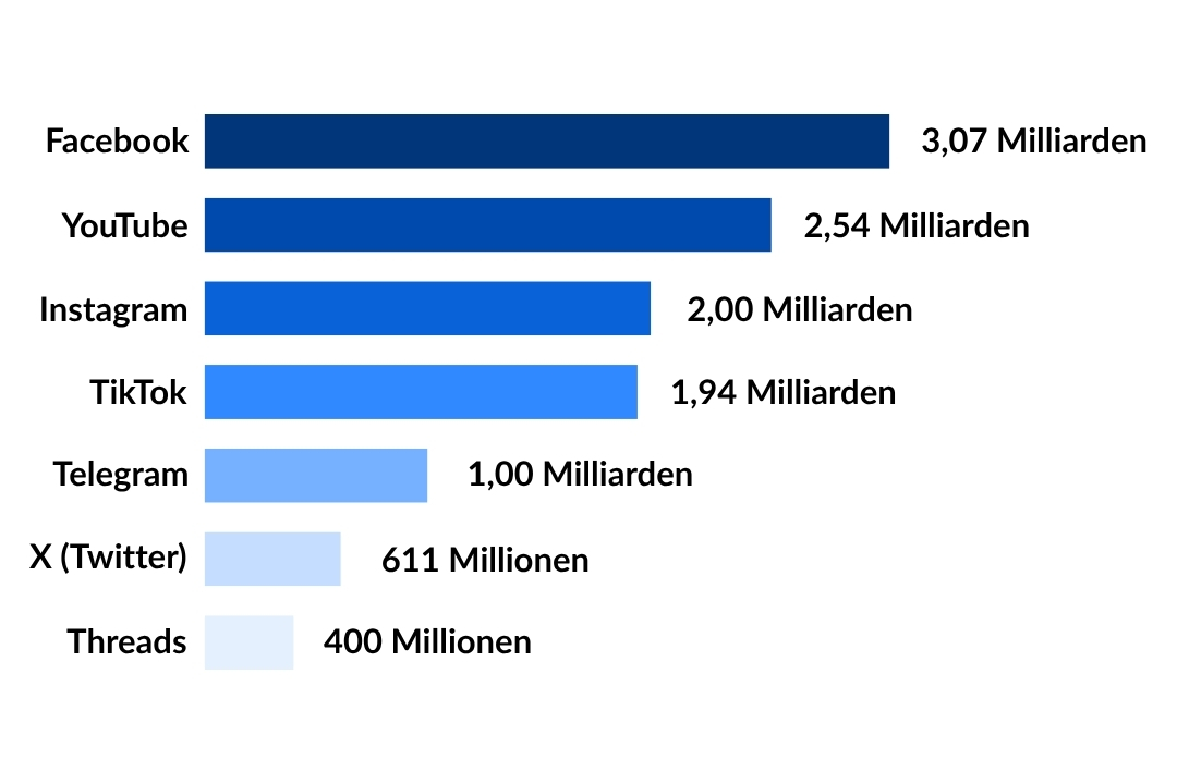 In Germany alone, 65.5 million people use social media, which corresponds to around 78% of the entire German population.