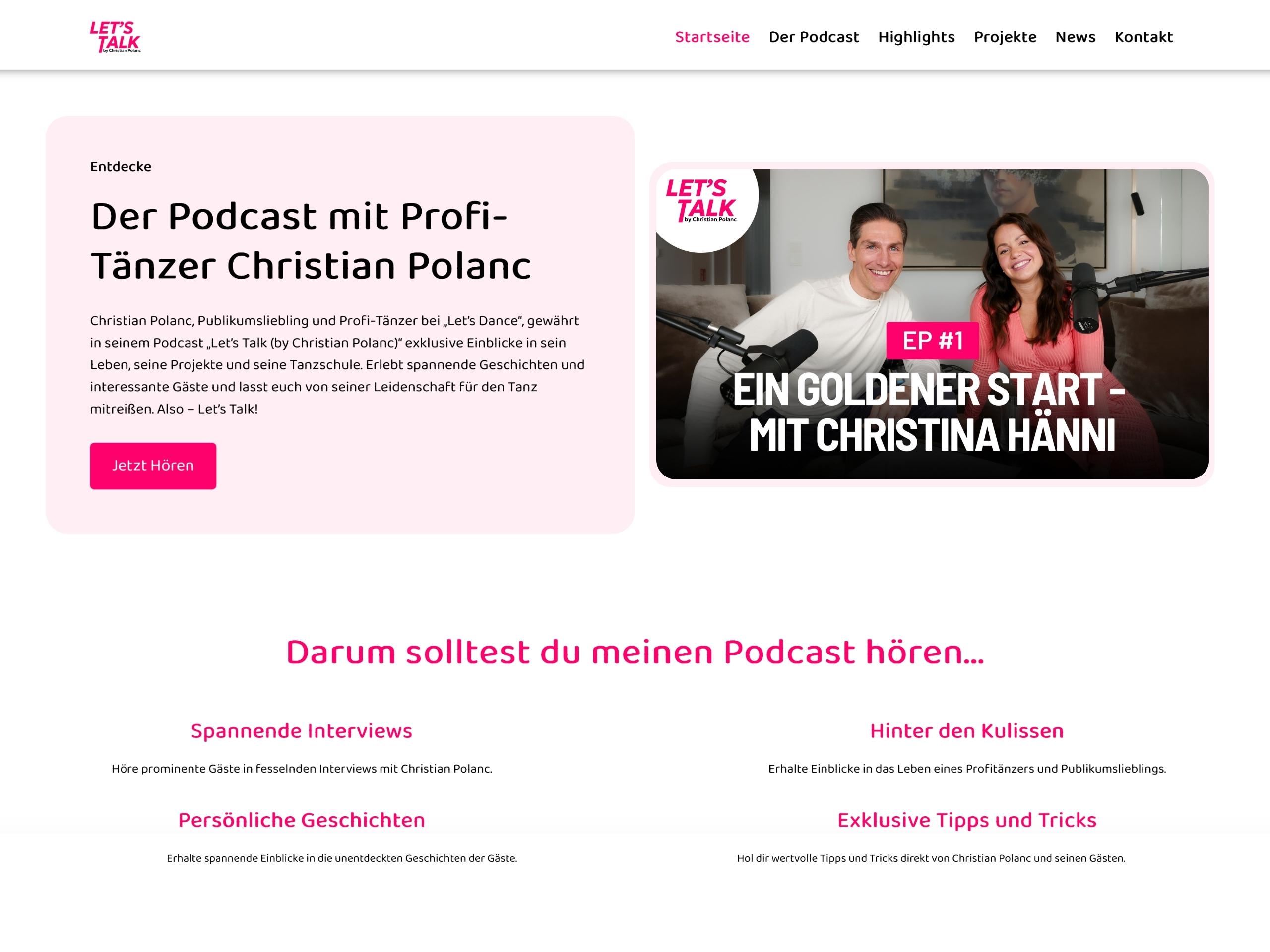 Eine Podcast Webseite erstellen für den „Let’s Talk“-Podcast von Christian Polanc bedeutet, eine moderne Plattform zu entwickeln, die den Podcast professionell präsentiert und gleichzeitig neue Hörer anspricht.